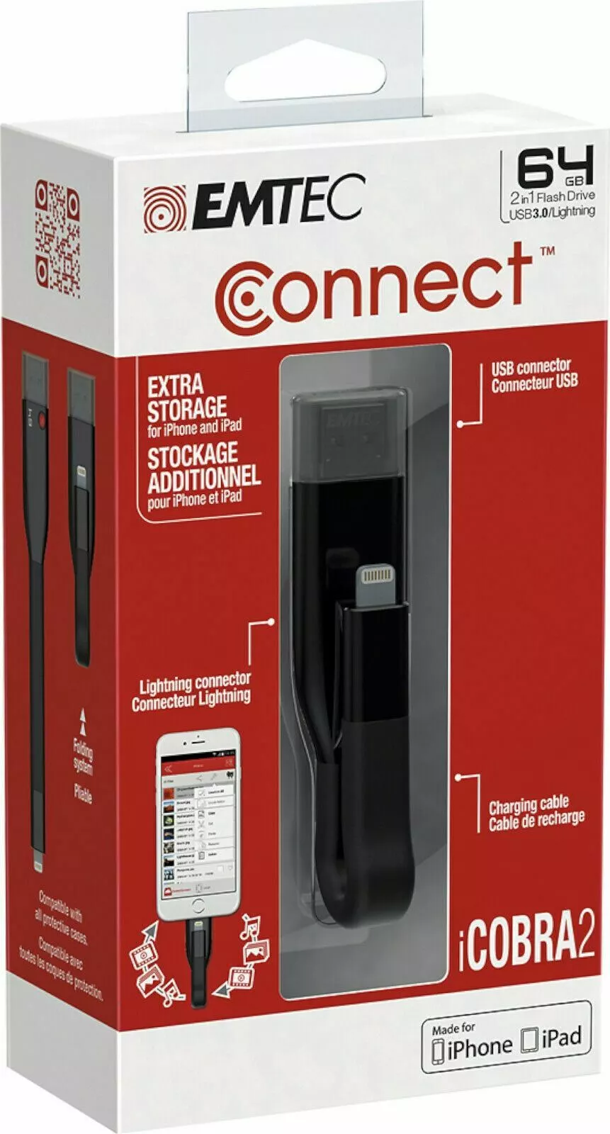 - Libérez immédiatement de l’espace sur votre iPhone ou iPad et augmentez instantanément sa capacité de stockage jusqu’à 128 Go